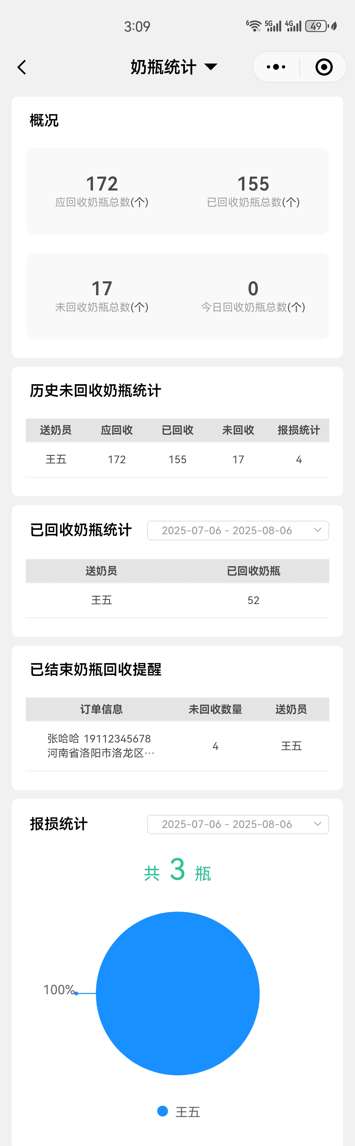 功能贴合需求,责任易追溯针对长期订单未回收,精准关联送奶员;已结束订单未回收直接显示订单和送奶员信息;报损统计自动核算且支持自定义查询,让管理各环节责任清晰。
