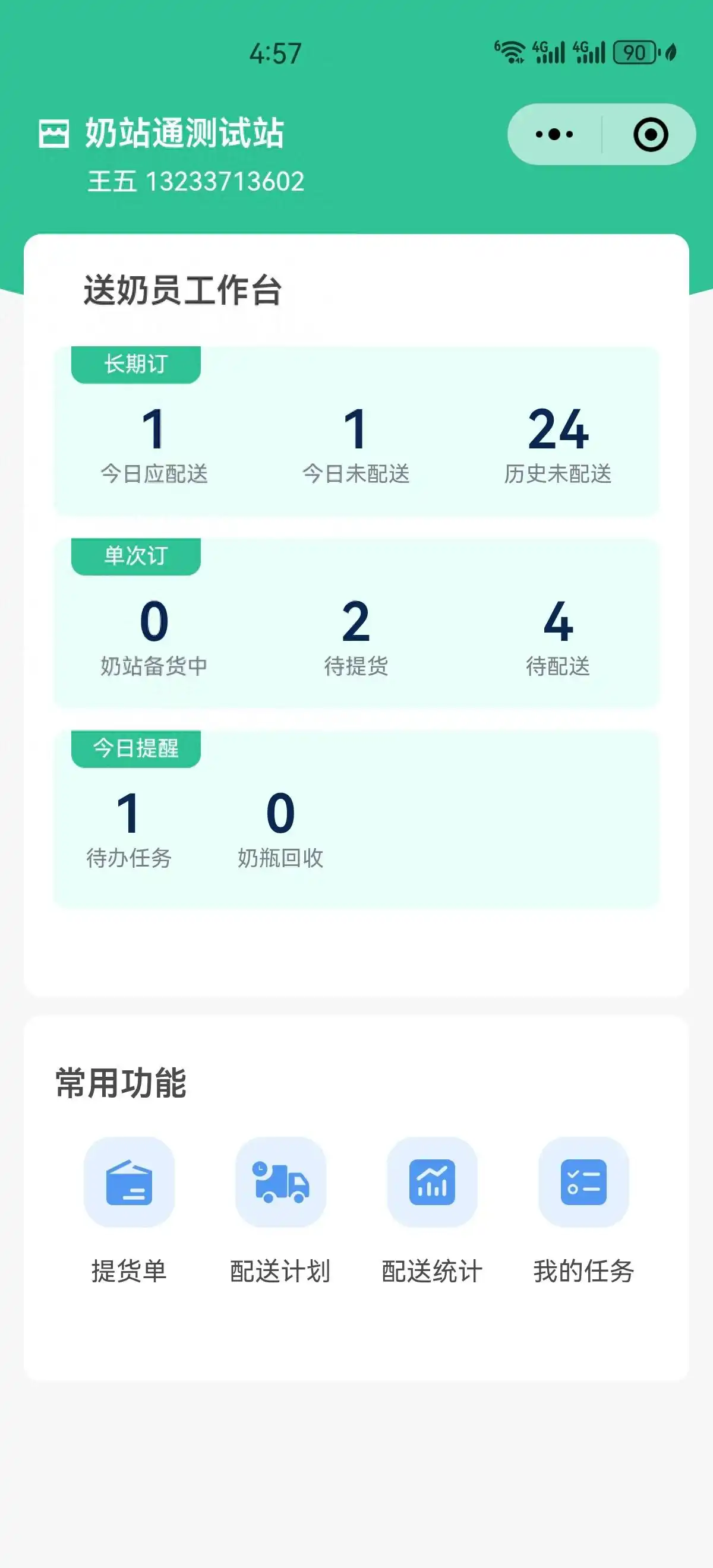 送奶员工作台:一打开就看到待办事项和快捷入口,哪些订单要送、哪些要处理,一目了然,“让工作找人”,不怕漏掉关键事。