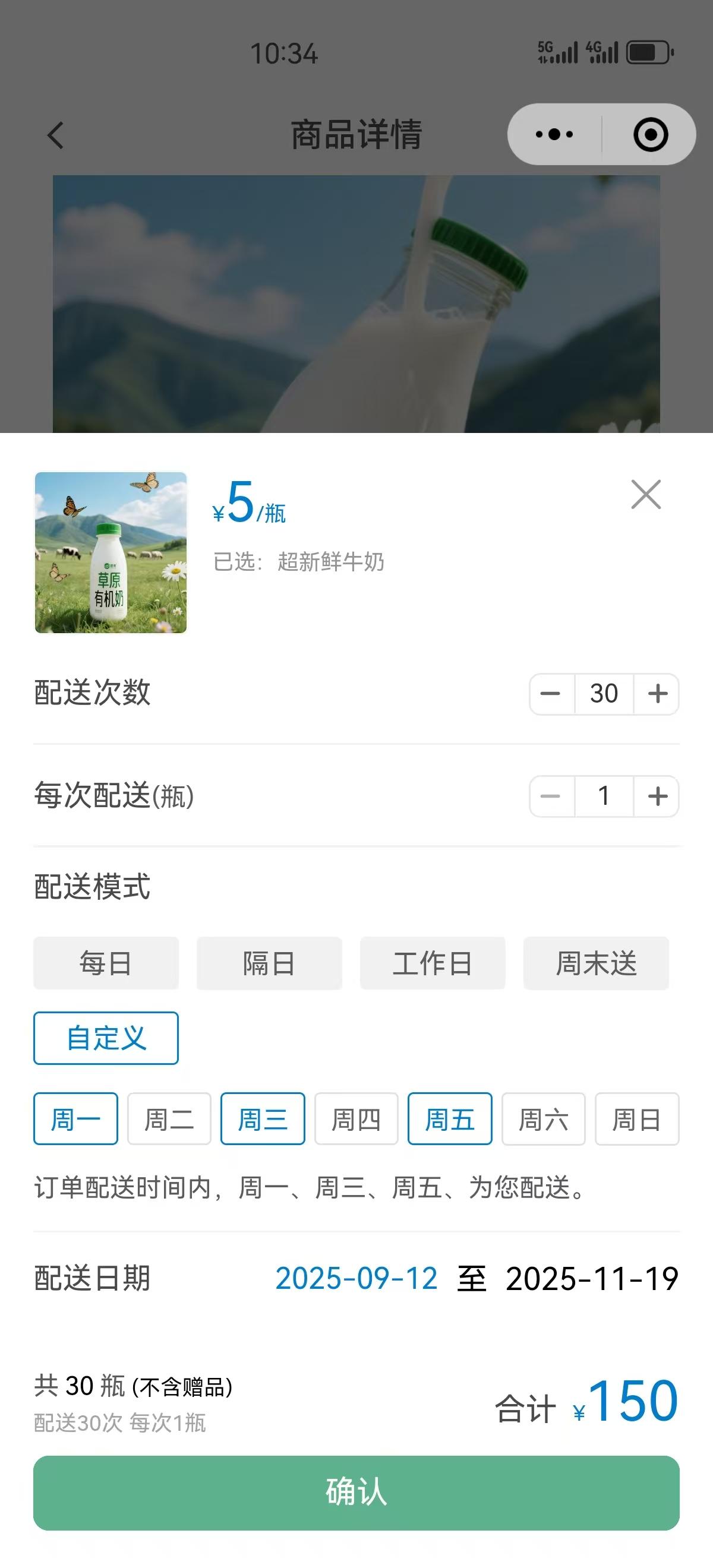 - 数量/次数/起送日期自由设定:订几瓶、送几次、何时开始送,清清楚楚、由客户自己掌控。