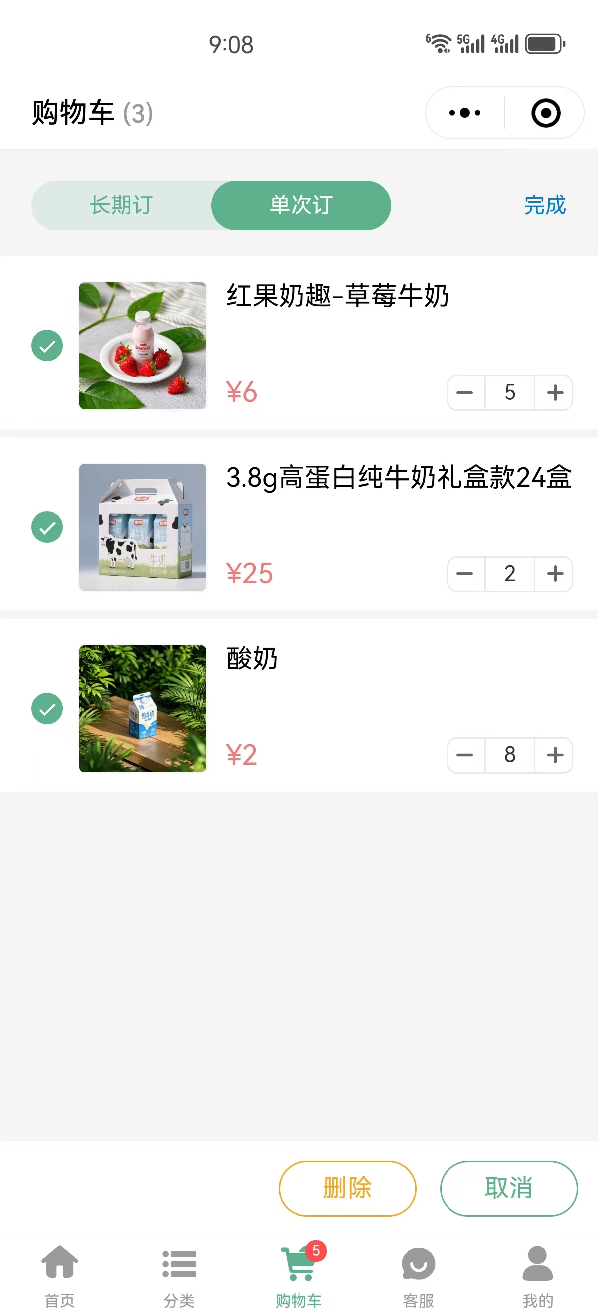 订奶系统购物车:改数量、多品结、删商品一键搞定!