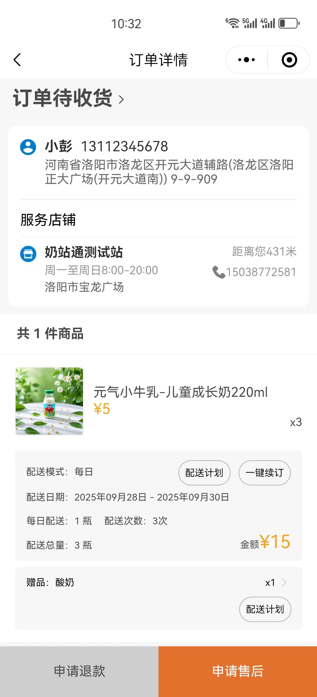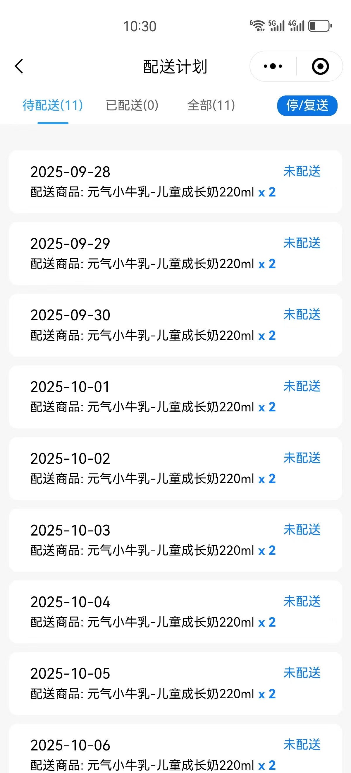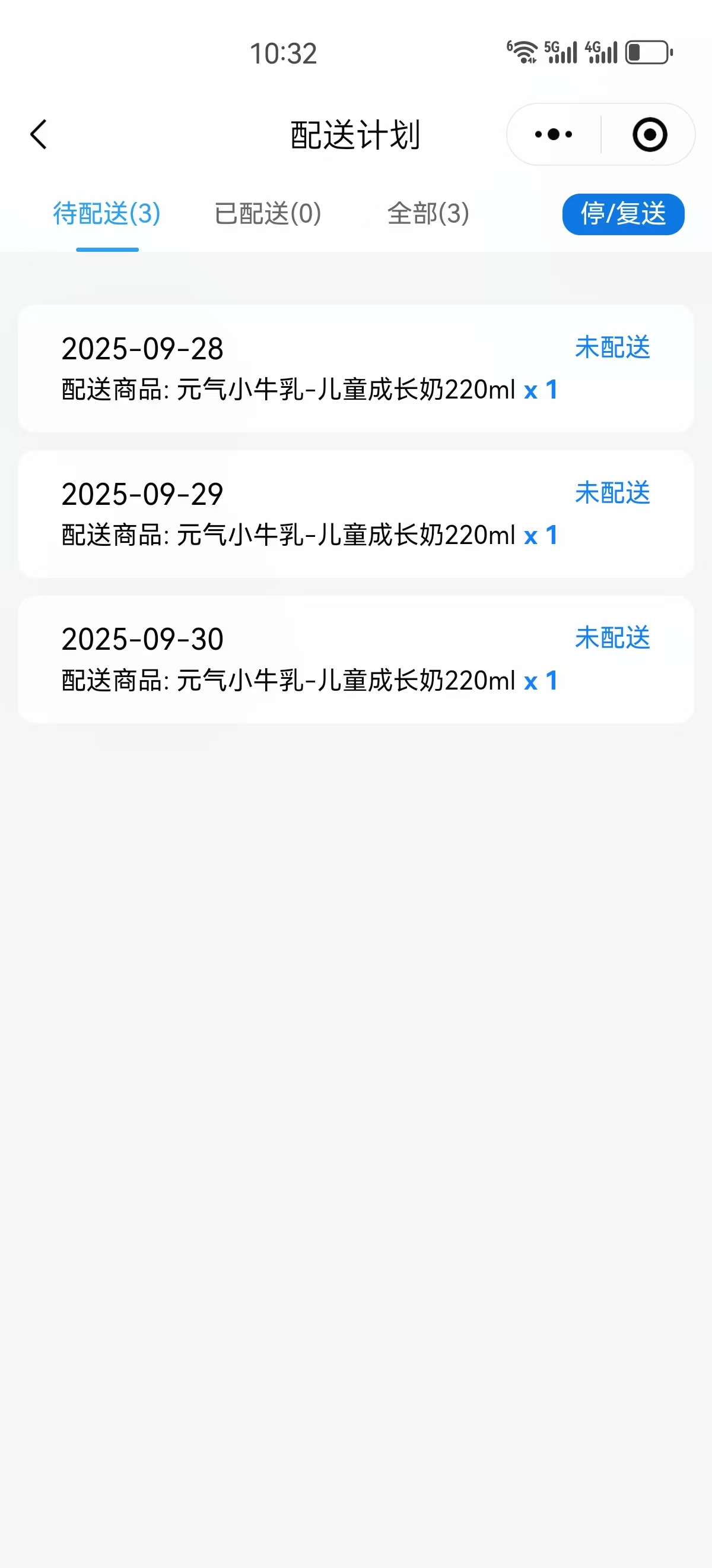 客户可随时在小程序前端清晰查看包含赠品在内的完整配送计划。何时送奶、何时送赠品,一目了然。这极大地减少了您的沟通成本,并建立起专业、可靠的服务形象。