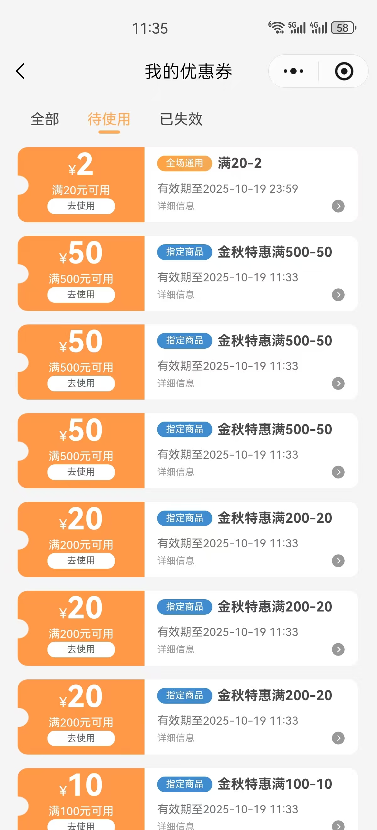 点击「去使用」,即可自动跳转至可使用商品列表。